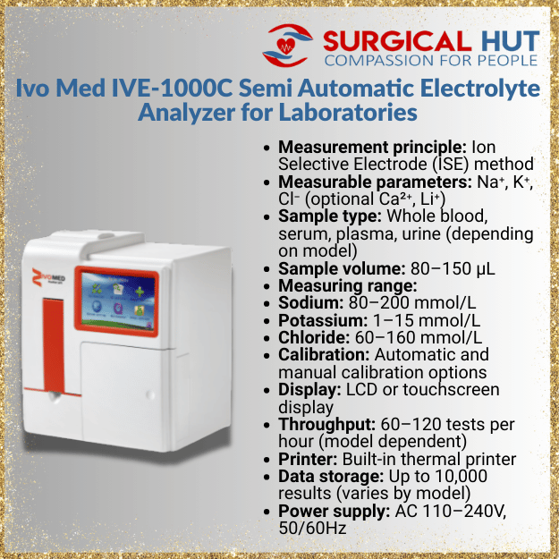 The Automatic Electrolyte Analyzer Offer By Brightway Pakistan and Surgical Hut is a highly sophisticated diagnostic instrument designed for accurate and efficient measurement of electrolytes in blood samples. Electrolyte analysis plays a vital role in clinical diagnosis, treatment monitoring, and emergency medical decision-making. This analyzer delivers fast, precise, and reliable results while minimizing operator involvement, making it ideal for hospitals, pathology laboratories, and research centers.